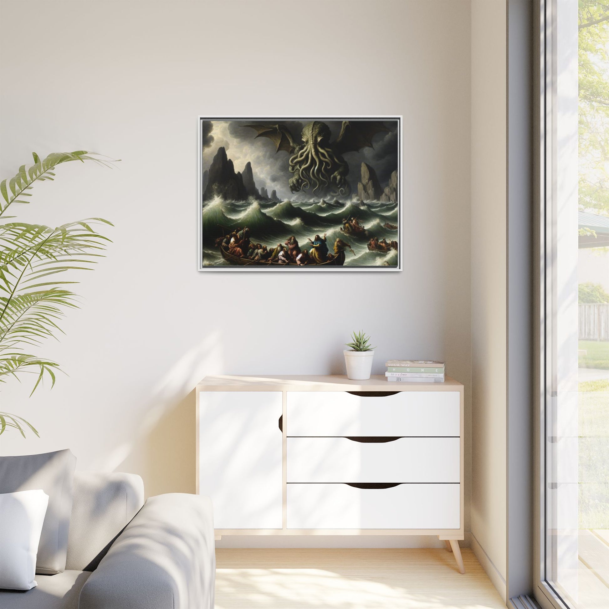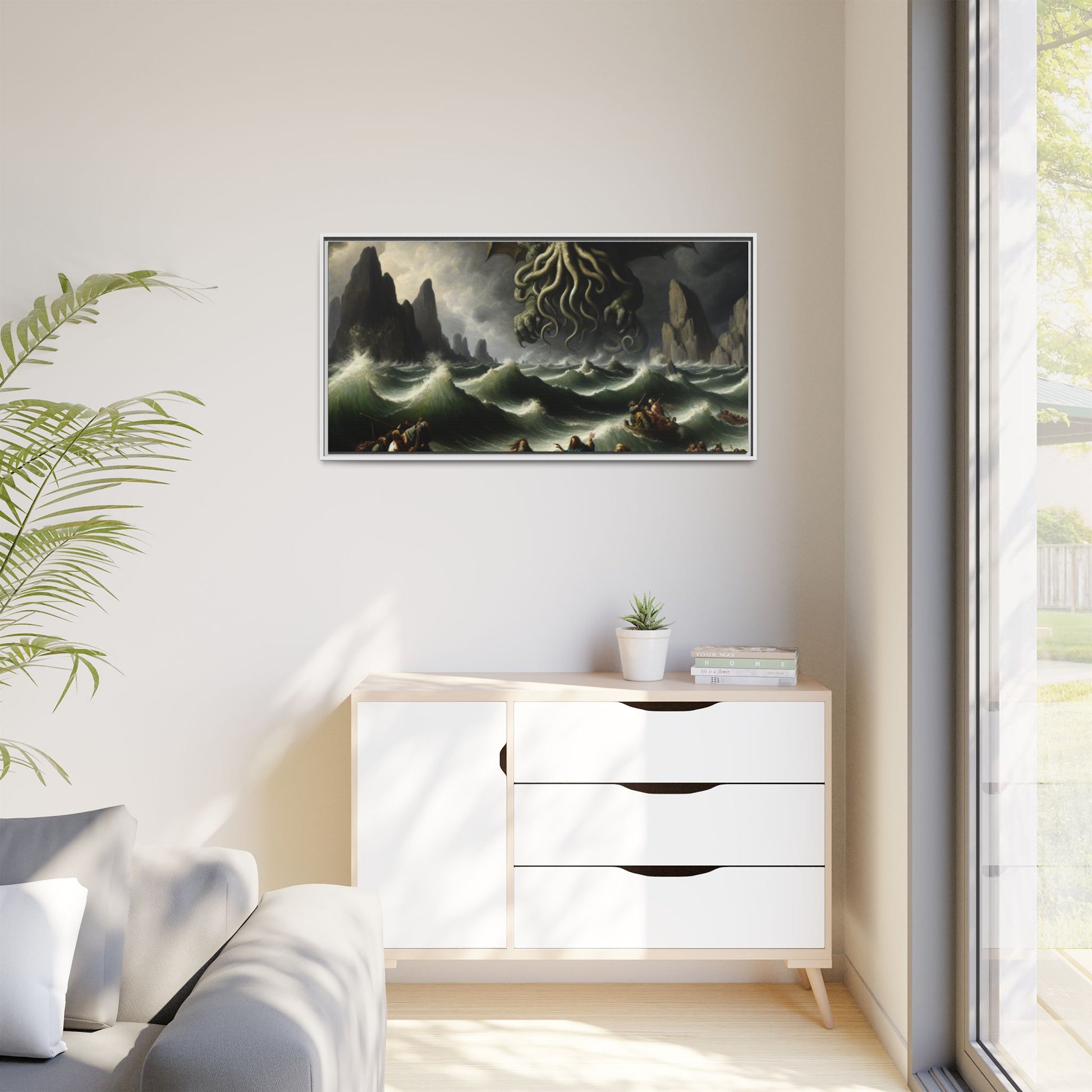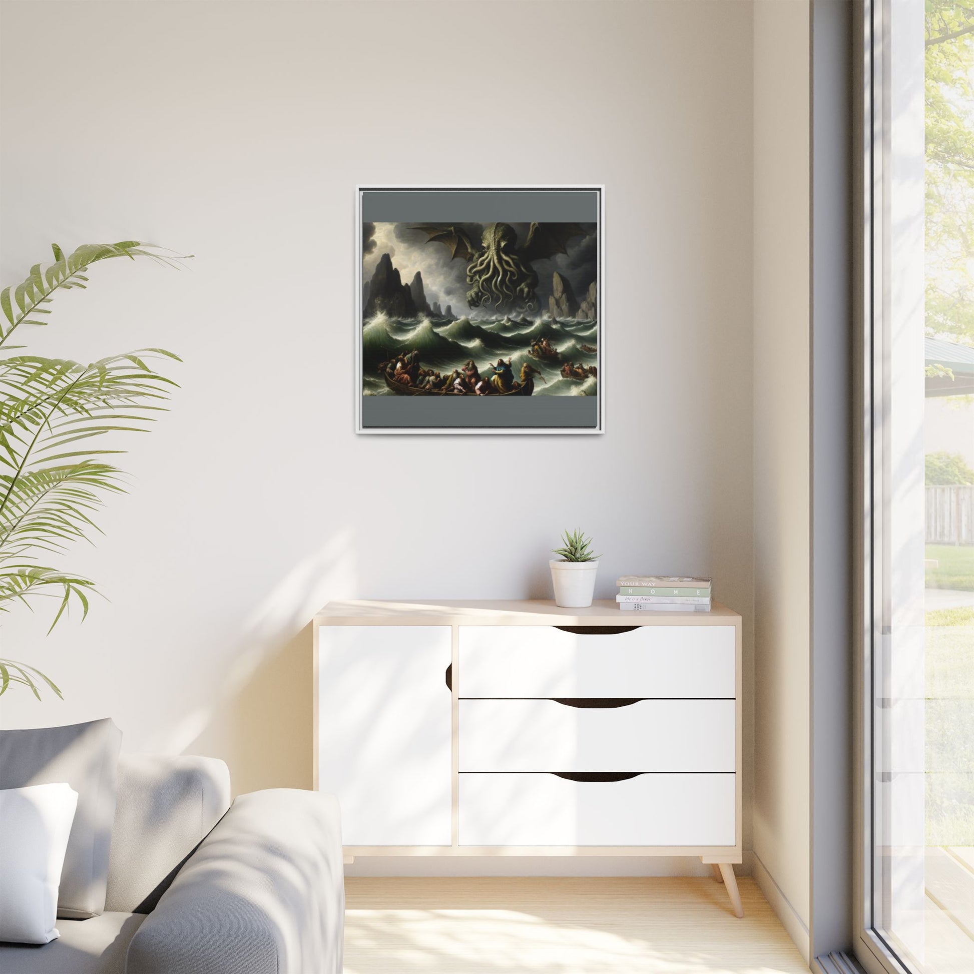 Cthulhu in the Storm Canvas, Framed (Multi-color)