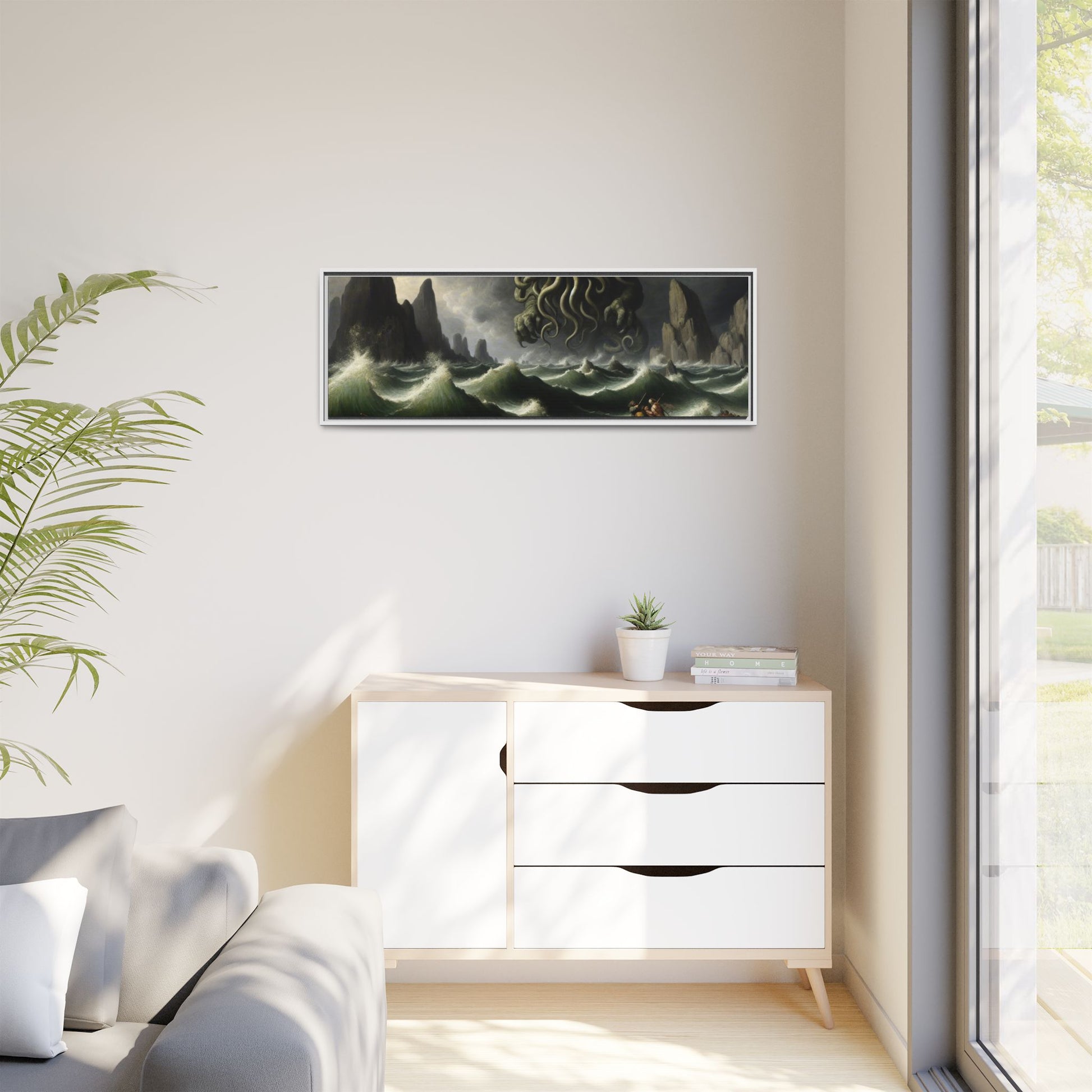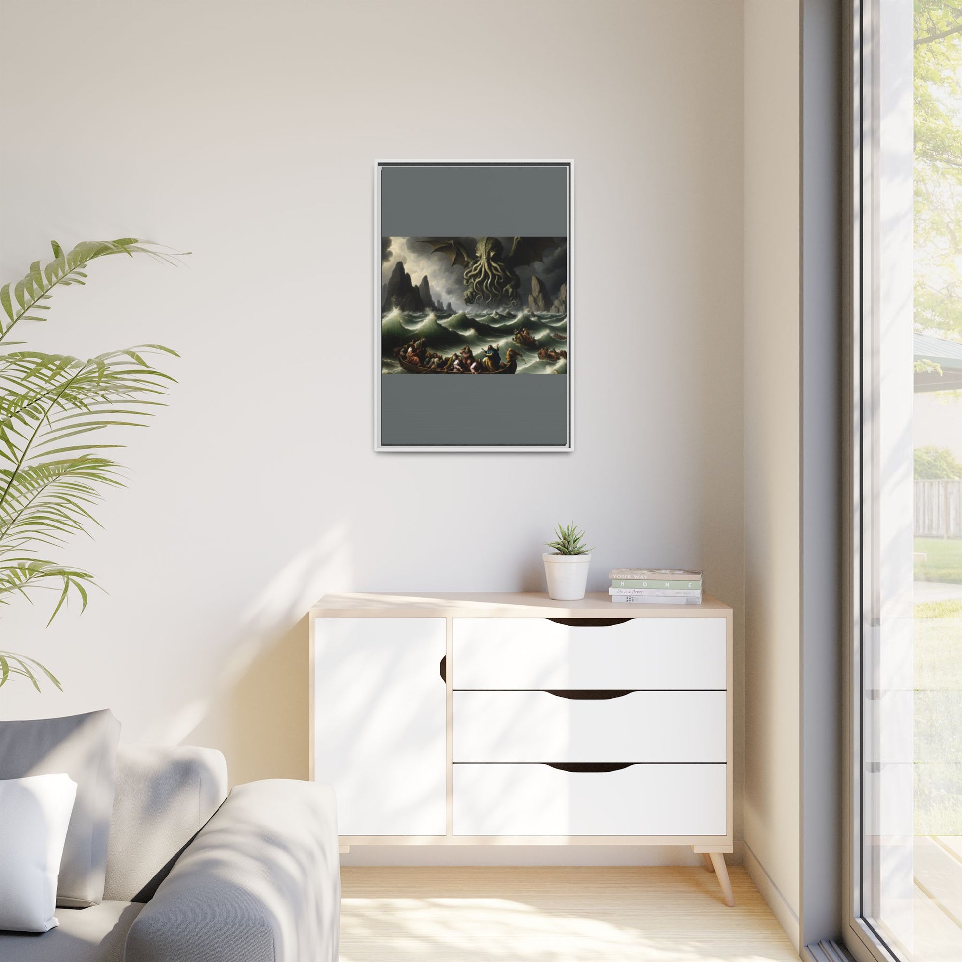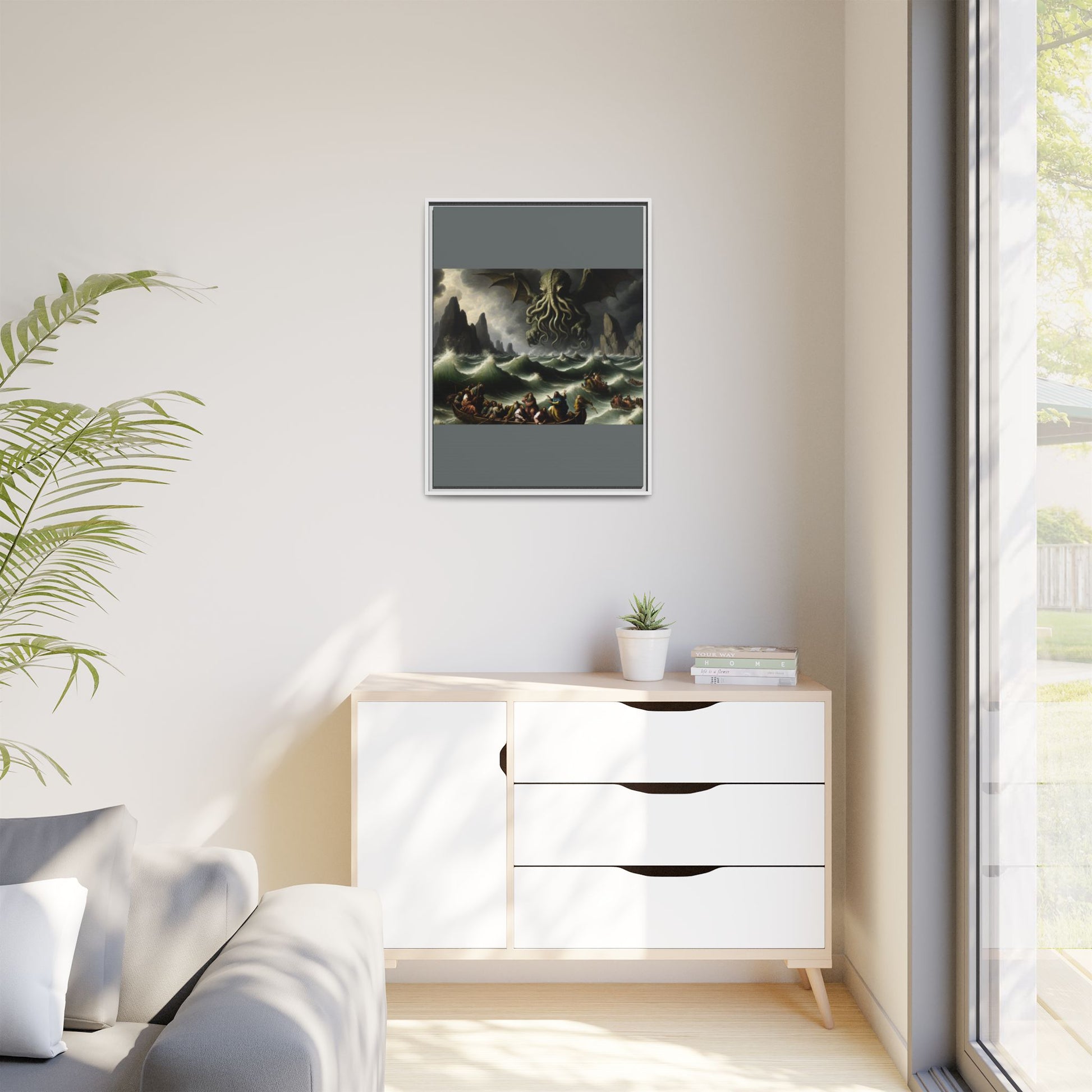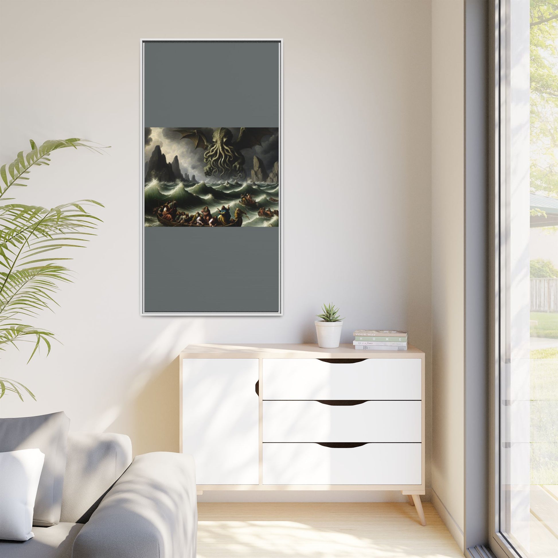 Cthulhu in the Storm Canvas, Framed (Multi-color)