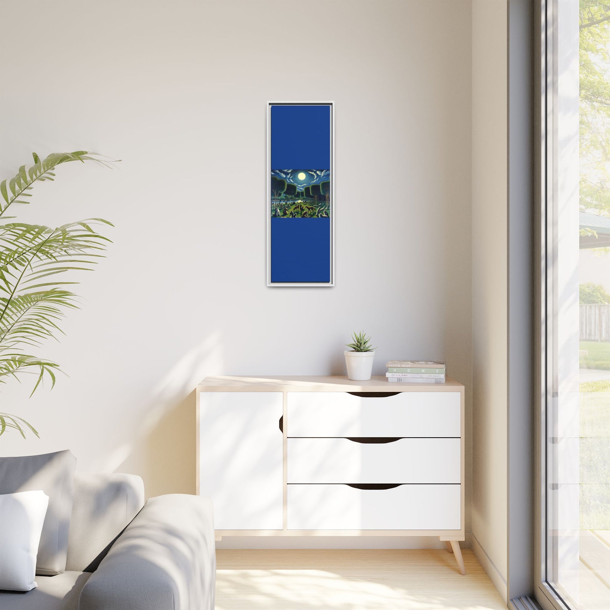 Enhance any interior space with beautiful art framed in a pinewood frame. Printed on a cotton-polyester canvas with a special proprietary coating to ensure long-lasting, vibrant colors and eye-catching detail. Made with sustainably sourced materials (Forest Stewardship Council certified), these frames are an eco-friendly choice. Choose between multiple sizes, and between 3 colors that matches your surroundings. The sawtooth hanging hardware is already attached.